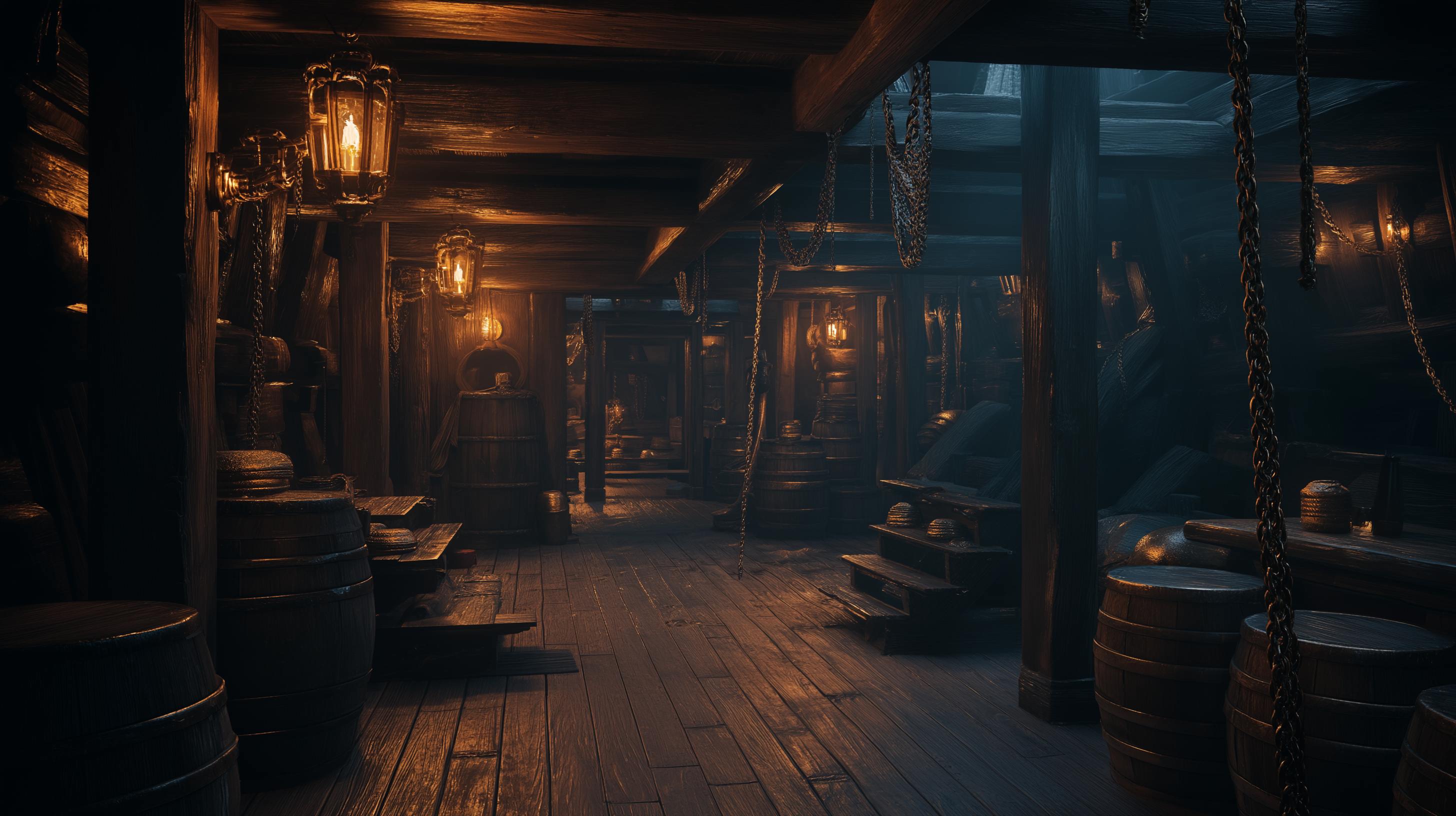 Beneath the waves, where the storm cannot reach, lies the sacred hold. It is not a room, but a sanctum of rope, shadow, and scent.